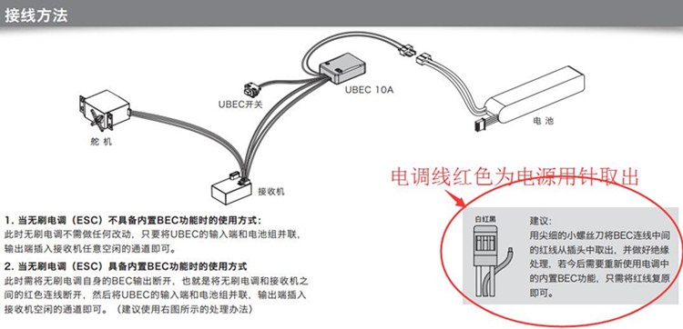 - 具有工作状态指示灯,当UBEC工作正常时该指示灯点亮.