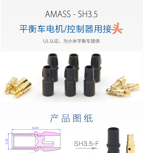 AMASS 艾迈斯 3.5mm 母头 带护套香蕉插头 SH3.5
