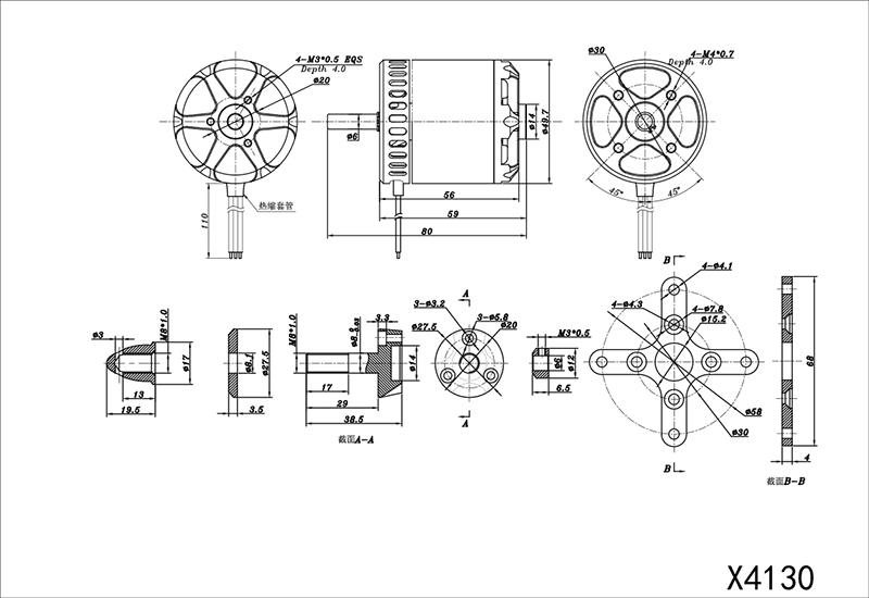 | 电机硅胶线规格 | 20AWG 110mm | 20AWG 110mm |
