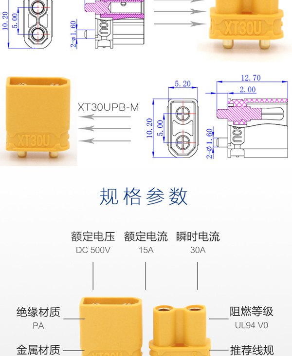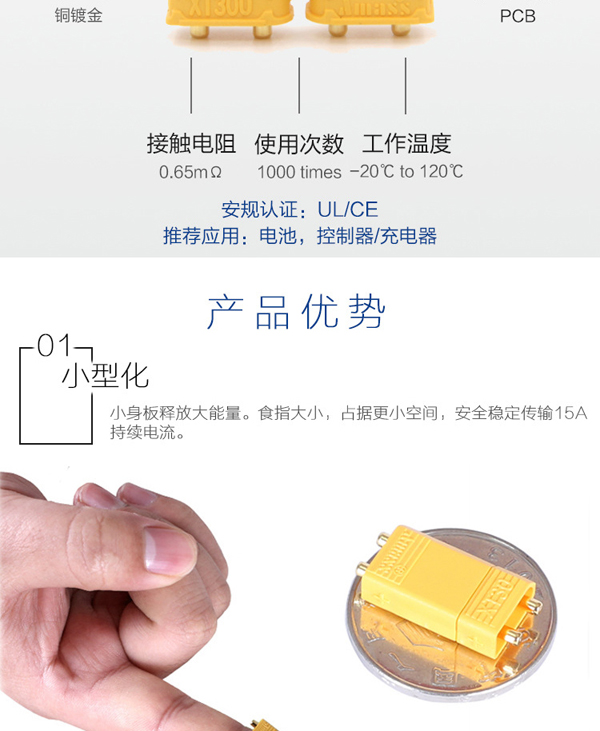 AMASS 艾迈斯 XT30UPB 母头 2mm镀金插头 电路板专用