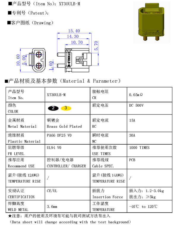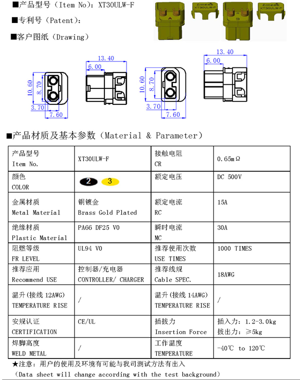AMASS 艾迈斯 XT30ULW 母头 防脱插头 2mm镀金插头