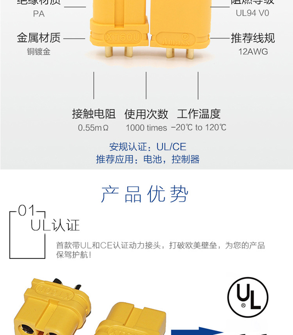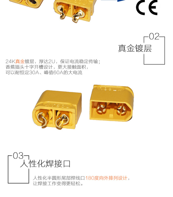AMASS 艾迈斯 XT60U 母头 镀金插头 体积小轻量兼容 XT60 遥控航模插头