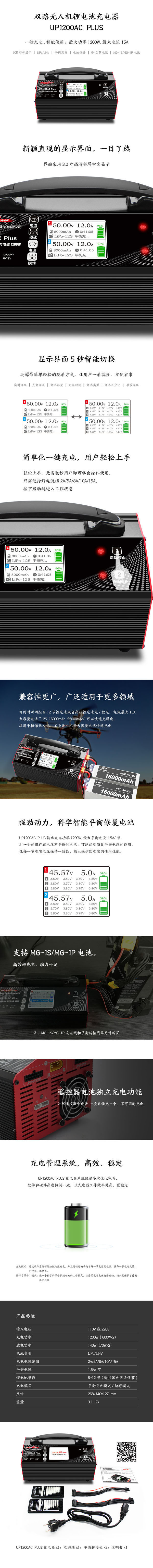 Ultra Power UP1200AC Plus 智能锂电池充电器(输入220V电压)中文版