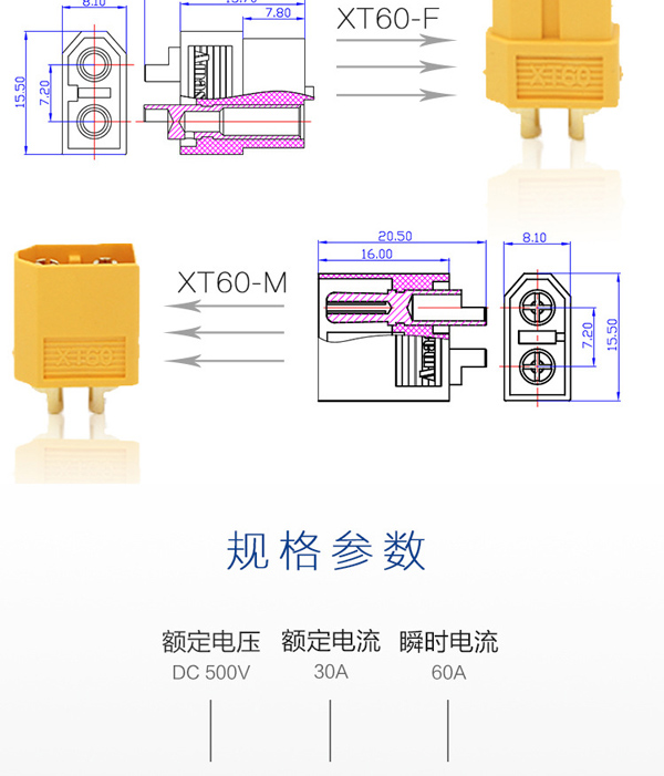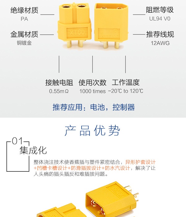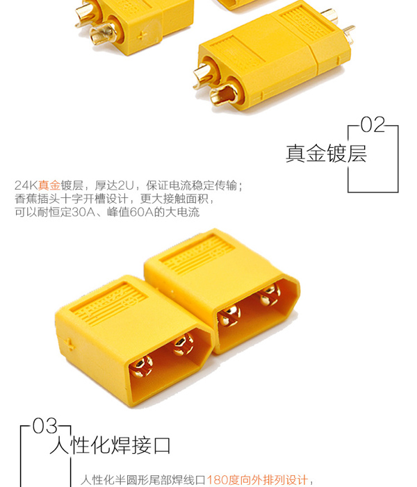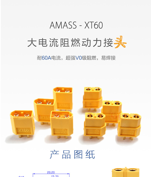 AMASS 艾迈斯 XT60 镀金插头 / 1对 (艾迈斯正品)