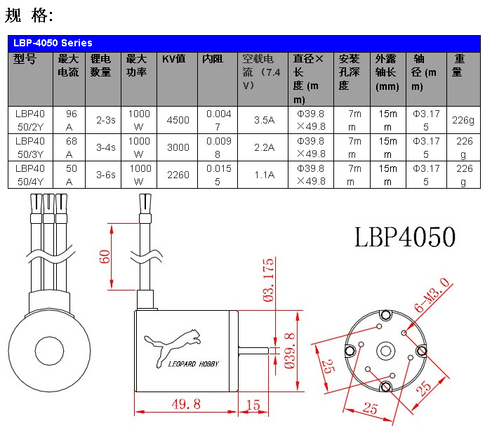 产品名称:红豹 4050 2260KV 4极高端内转无刷马达/(LBP4050/4Y)