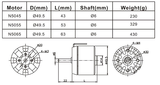 EMP 410KV 3-8S 外转子无刷电机 N5065/05