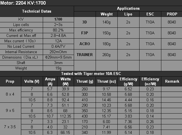 1 x T-Motor T2204 1700KV 外转子无刷电机