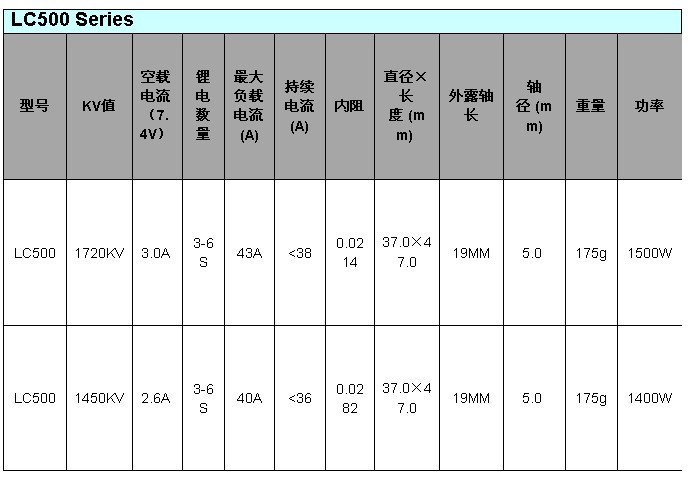 关键词: 豹子  500电直用  1450KV  外转无刷马达  LC500-1450
