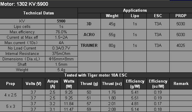 1 x T-Motor 1302 5900KV 外转子无刷电机