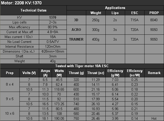 1 x T-Motor T2208 1370KV 外转子无刷电机