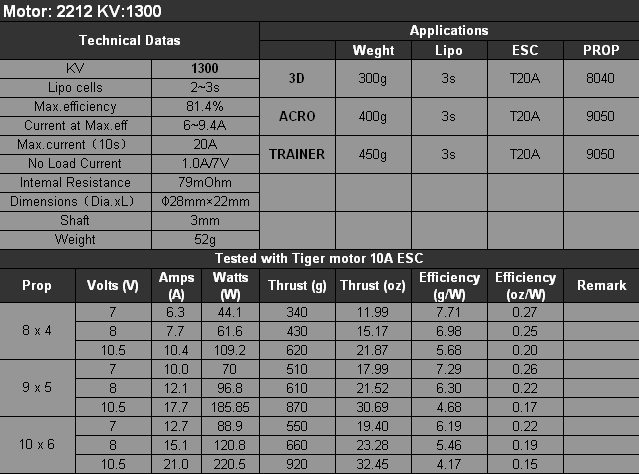1 x T-Motor T2212 1300KV 外转子无刷电机