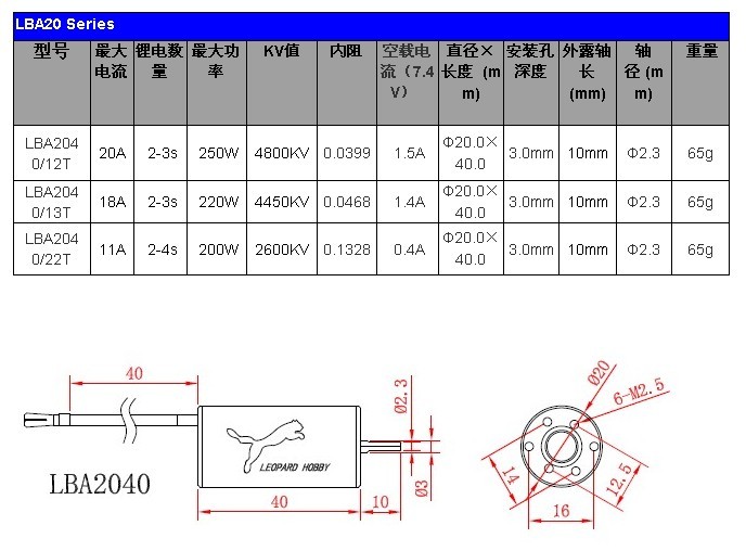 关键词: 豹子2极车用4450KV  内转无刷马达  LBA2040  13T