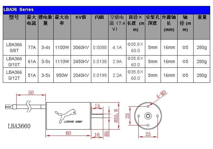 关键词: 豹子2极车用3600KV  内转无刷马达  LBH3660  8T