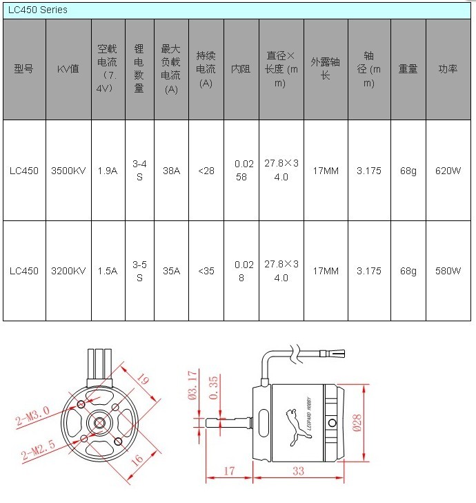 关键词: 豹子  450电直用  3500KV  外转无刷马达  LC450-3500