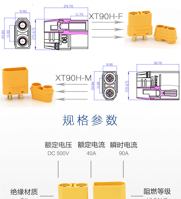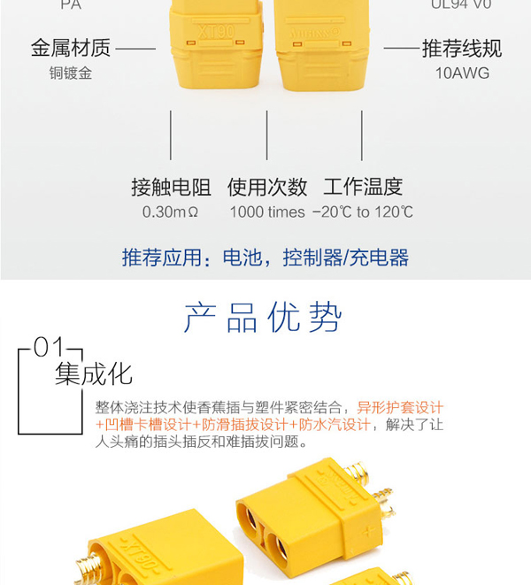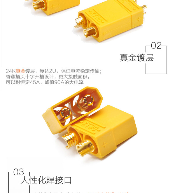 AMASS 艾迈斯 XT90 4.5mm镀金香蕉插头