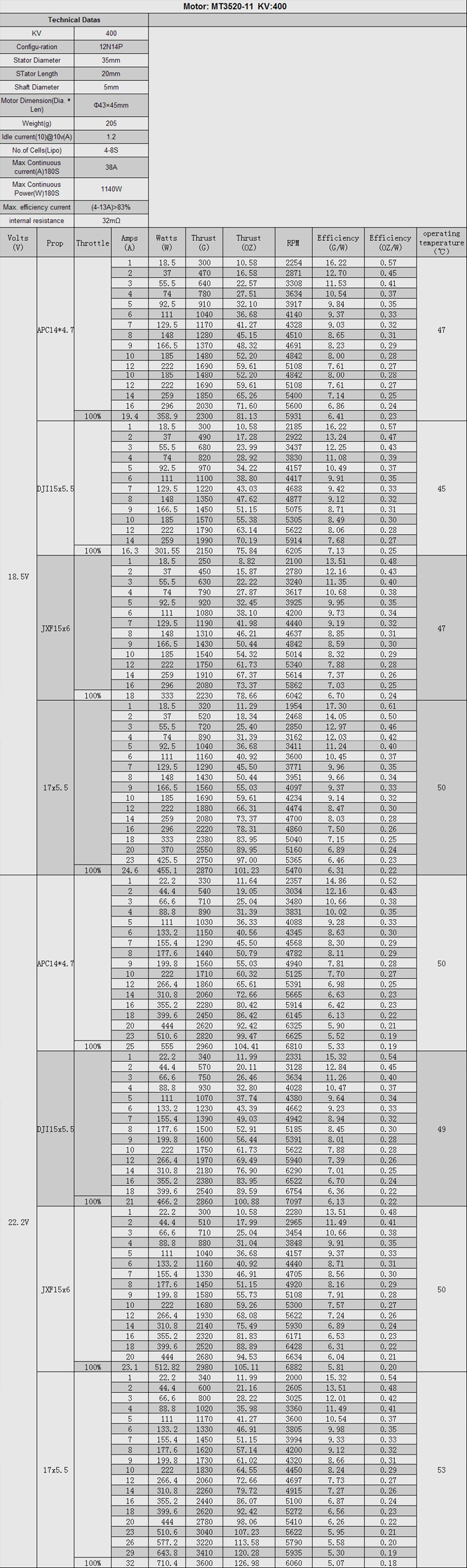 1 x MT3520 400KV 电机