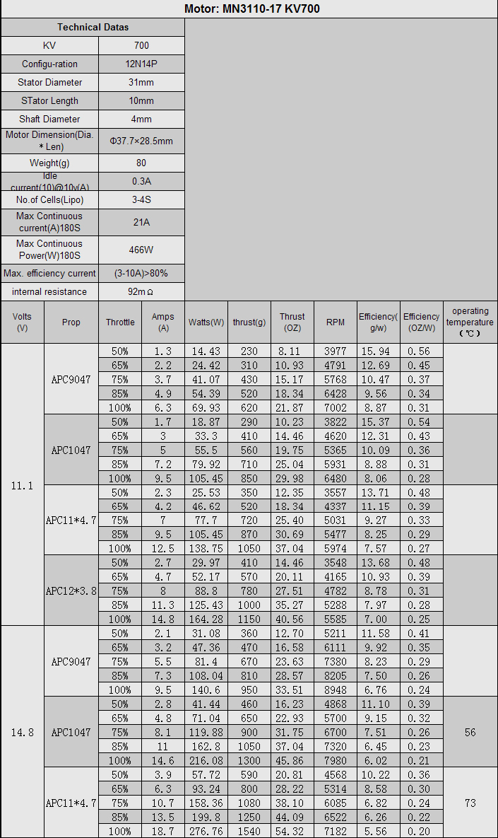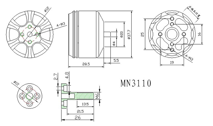 T-Motor MN3110 700KV 高性能多旋翼外转子无刷电机 (3-4S)