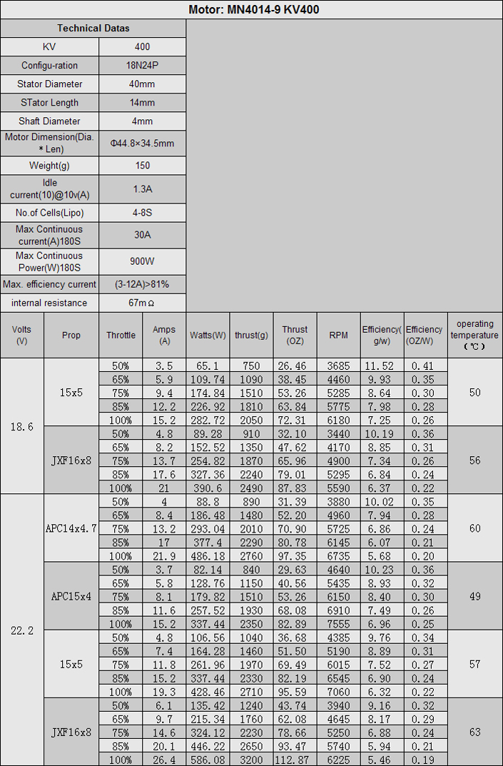 T-Motor MN4014 400KV 高效率多旋翼盘式无刷电机 (4-8S)