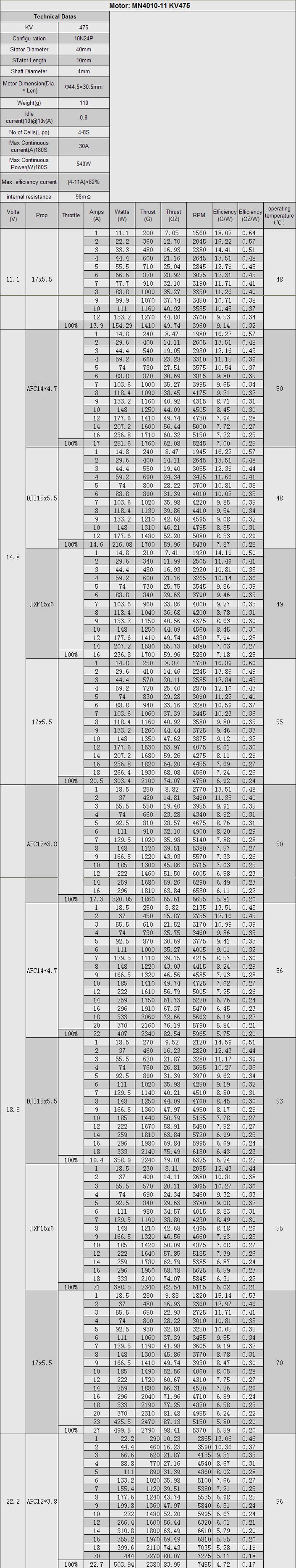 1 x MN4010 475KV 电机