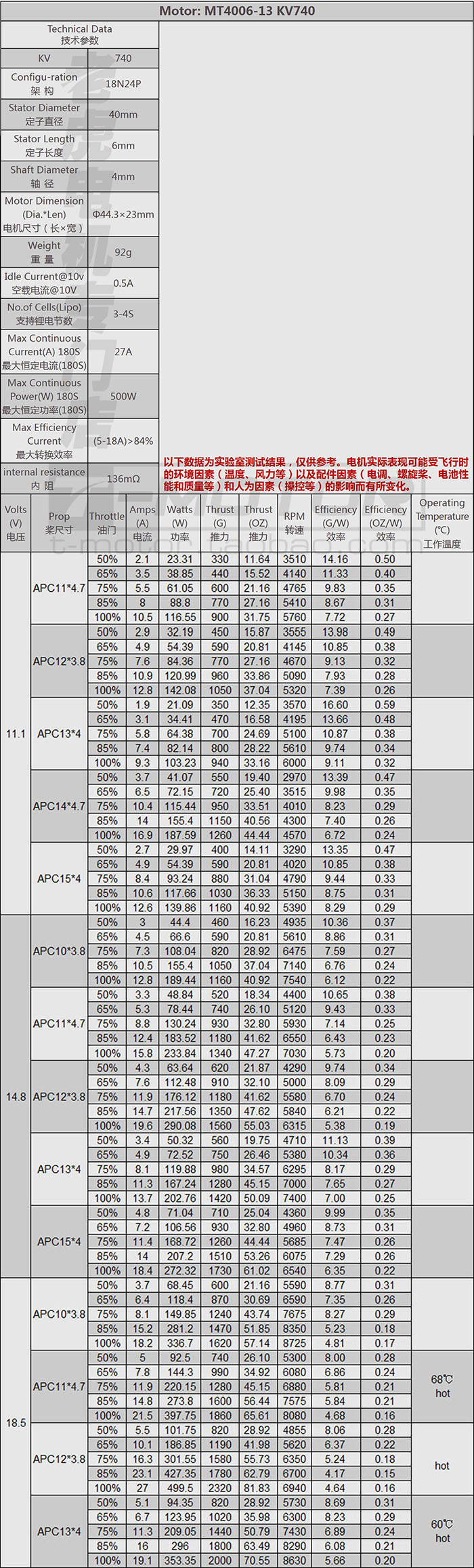 T-Motor MT4006-13 740KV 高效率多旋翼盘式无刷电机(3-4S)