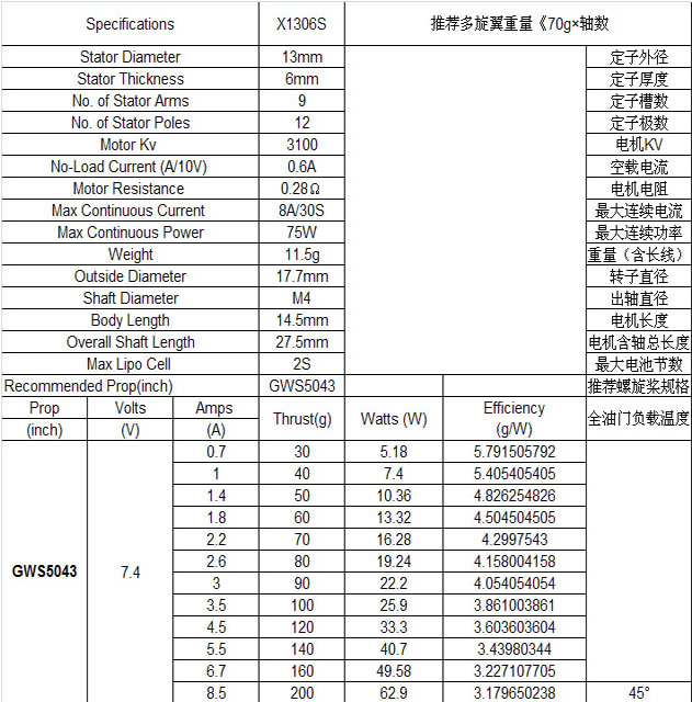 朗宇 Sunnysky X1306S-3100KV 外转子无刷电机 /两只装 CW+CCW