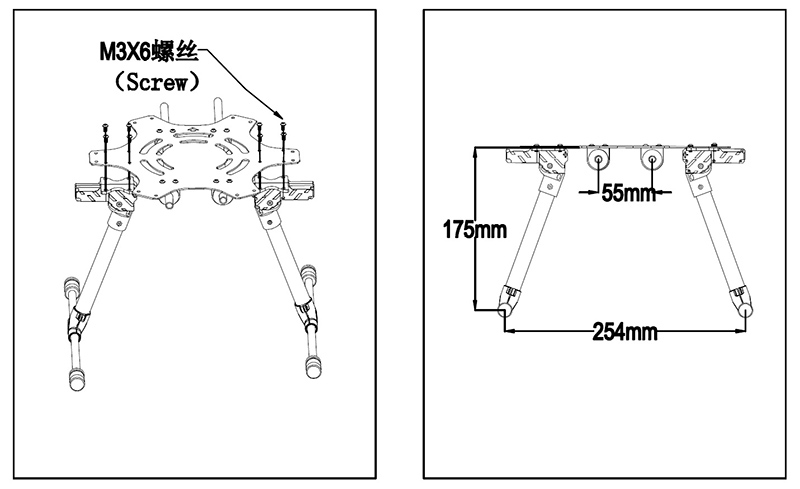 这个收放起落架可以配合大疆原装F550系列以及众多副厂F550结构六轴机架用于航拍活动,提供更好的视角。用户可通过设置遥控器2段开关通道或者旋钮开关远程控制起落架的放下和收起,收起的起落架不再阻挡拍摄视线,从而达到更理想的航拍效果。