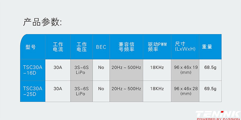 产品名称:tenink腾影第二代CNC一体式无刷电子调速器TSC30A / D16