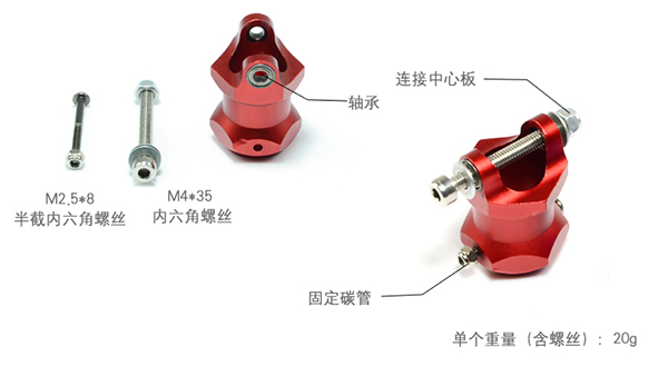 产品名称:CNC铝合金 横向机臂折叠管夹 适用于D16mm碳管 / 带轴承版