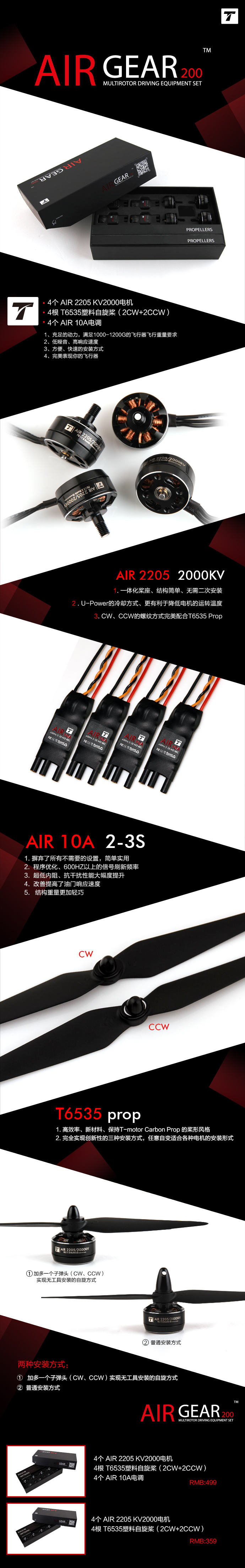 T-MOTOR AIR GEAR 200多轴/多旋翼动力套装2205 KV2000(电机+电调+桨)
