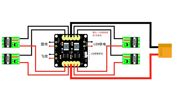注意:12v降压模块需要接入4S以上电池才能正常工作 ,如是3S电池没必要经过降压。