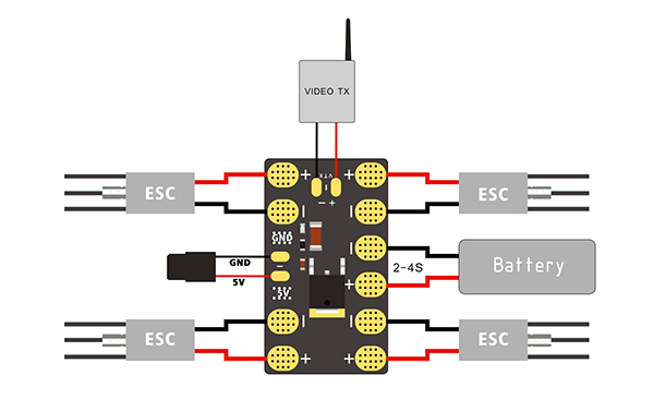 产品名称:多轴 穿越机 2-4S超迷你 电调分电板 5V BEC 耐流50A