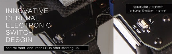 * 创新的总电子开关设计,开机后可控制前后LED开关