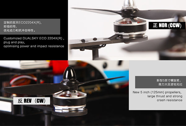 * 新型5英寸螺旋桨,推力大且坚韧无比