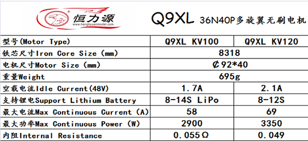 产品名称:恒力最新 Q9XL(8318)120KV 多旋翼 马达/ 8-12S