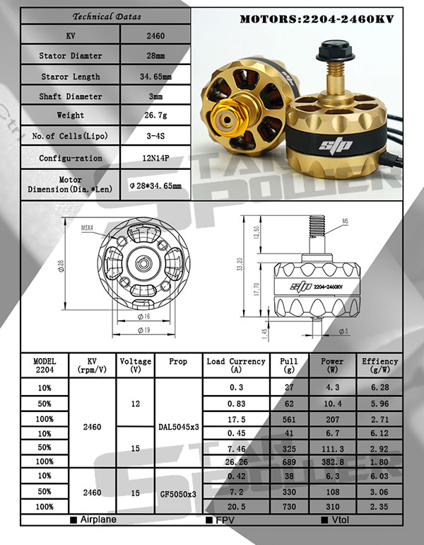 产品名称:星动力 R2204-2460KV 穿越机竞赛型 金色电机 CW