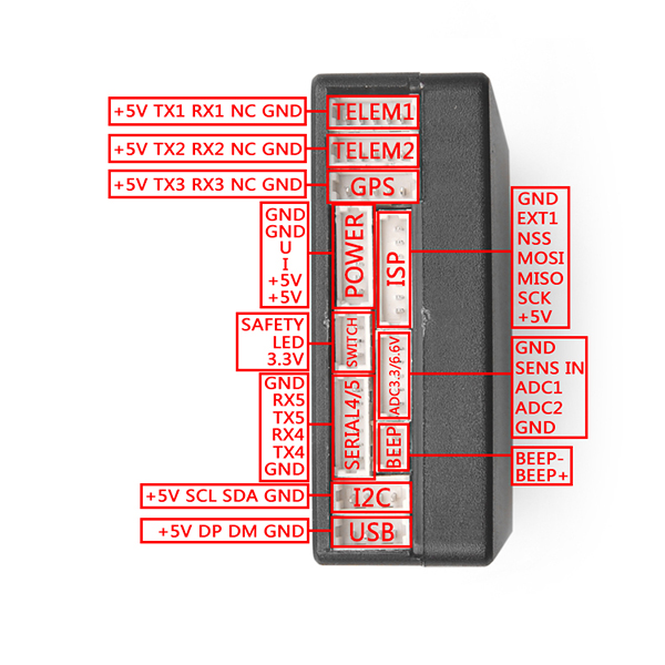 5.Telemetry接口2个(1.25mm间距 5pin JST插口)