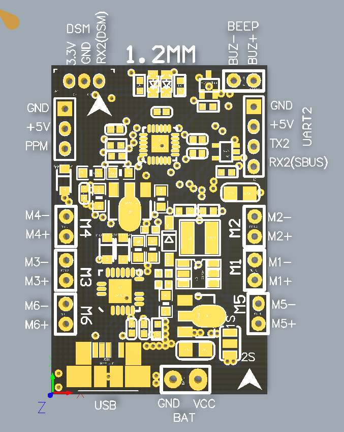 2、完善的电源输入方案,使得飞控支持1S(4.2V)和2S(8.4V)供电,2S供电可以带来更加暴力的飞行体验。独立设计的电路结构,自带增压降压技术,无论是1S或是2S电源输入时,UART1/2输出5V,DSM输出3.3V