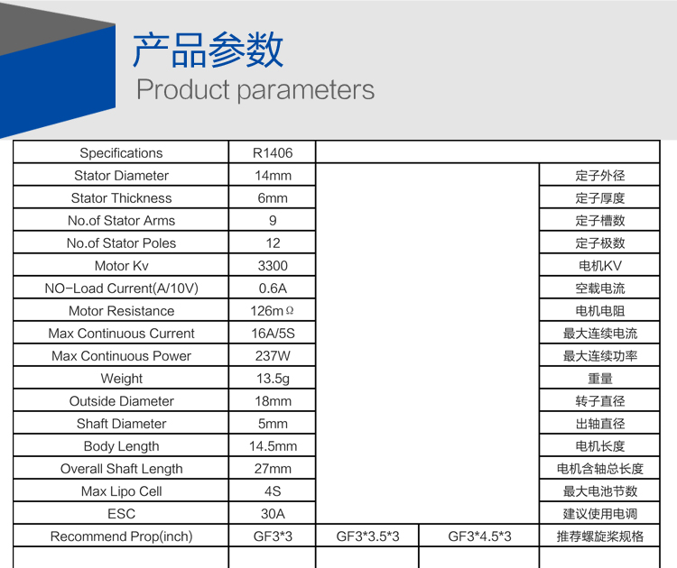 SUNNYSKY 朗宇 R1406 3300kv CCW 穿越机电机-黑