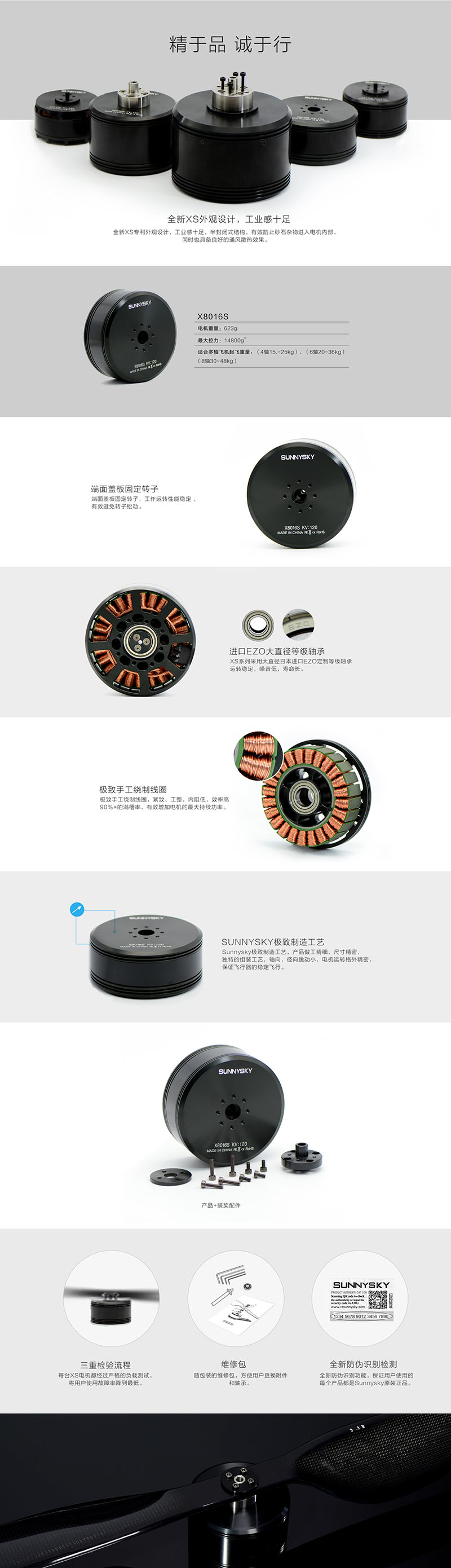 SUNNYSKY 朗宇 XS8016S 120kv 盘式电机 植保电机