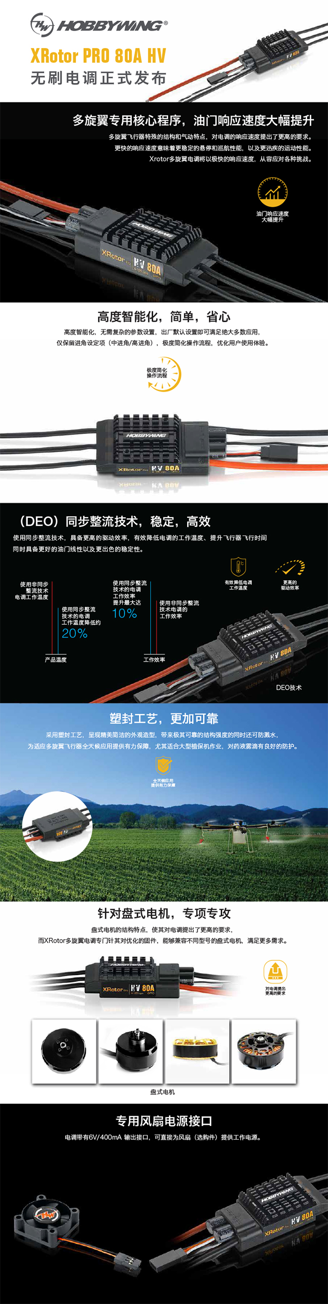 HOBBYWING 好盈 乐天 XRotor-Pro-80A-HV-V3 专业版 无刷电调 电子调速器