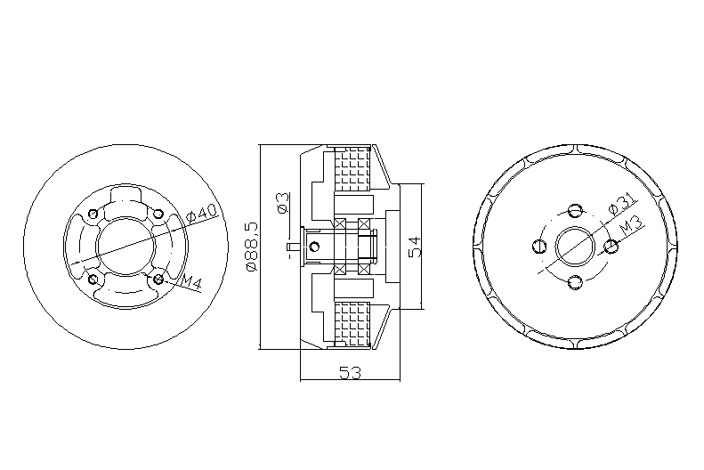 此套装为单轴动力套装,包含:电机1个,电调1个,桨1支,电机座1个(可选30mm或者35mm碳管)。