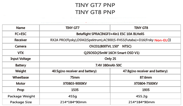 LDARC TINY GT7 75mm 2S 室内四轴无刷 穿越机套装 / 含RX2A PRO接收机(兼容Flysky控)