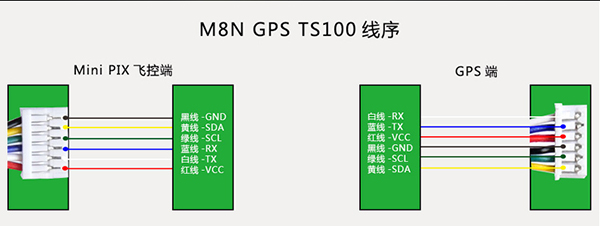 注意:GPS出厂插头为乐迪MINI PIX专用接头。如果是要用到穿越机飞控,需要把接头剪掉后焊线.线序接下面图片。