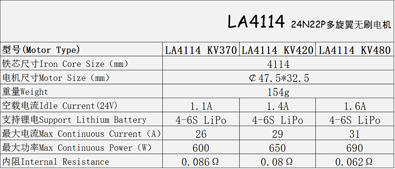 产品名称:EAGLEPOWER 鹰动力 LA4114 370KV 高能效大功率多旋翼盘式马达 适合6-8旋翼 5-10kg 动平衡 6S 原恒力4830-370KV