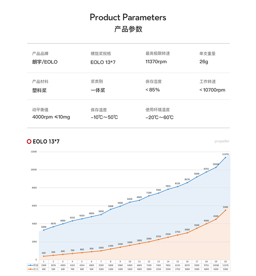 SUNNYSKY 朗宇 EOLO13*7 30-70E 固定翼桨 无人机巡航桨 蓝色