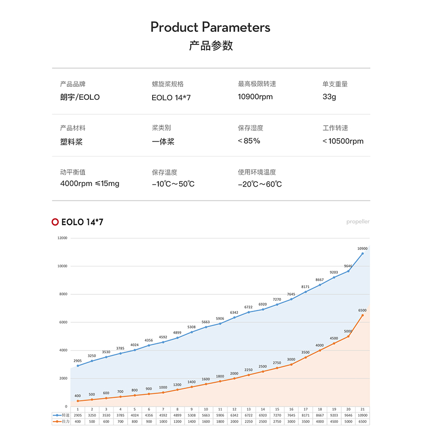 SUNNYSKY 朗宇 EOLO14*7 30-70E 固定翼桨 无人机巡航桨 灰色