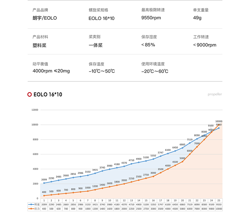 SUNNYSKY 朗宇 EOLO16*10 30-70E 固定翼桨 无人机巡航桨 灰色