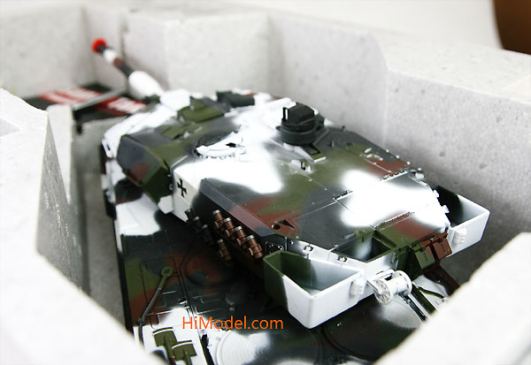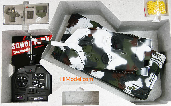 此款为1:24比例的遥控坦克,可遥控发射BB子弹,外形逼真,配件齐全,可旋转车身,多角度可行进。