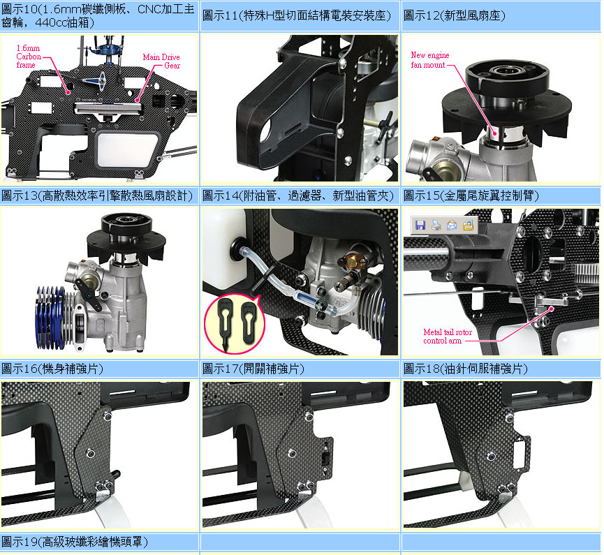 1.全金属高精度主旋翼控制组,拥有极佳的钢性与优异的操控精确度。