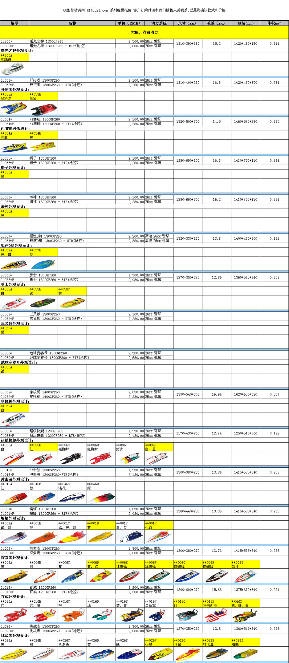 各种型号26CC汽油动力快艇,接受订做,型号可选,价格以具体型号为准,可选装小松汽油机,价格再原价格基础上增加1500元,标配国产汽油机,不含遥控器,如需遥控器另外增加200元,国产两通道枪式遥控器。